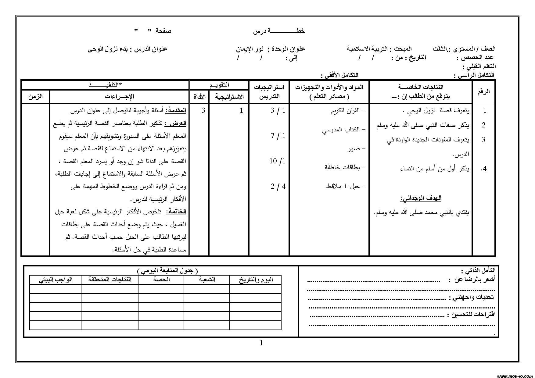Word نموذج word قابل للتعديل دفتر التحضير لمادة التربية الاسلامية collin الصف الثالث الفصل الاول 2024