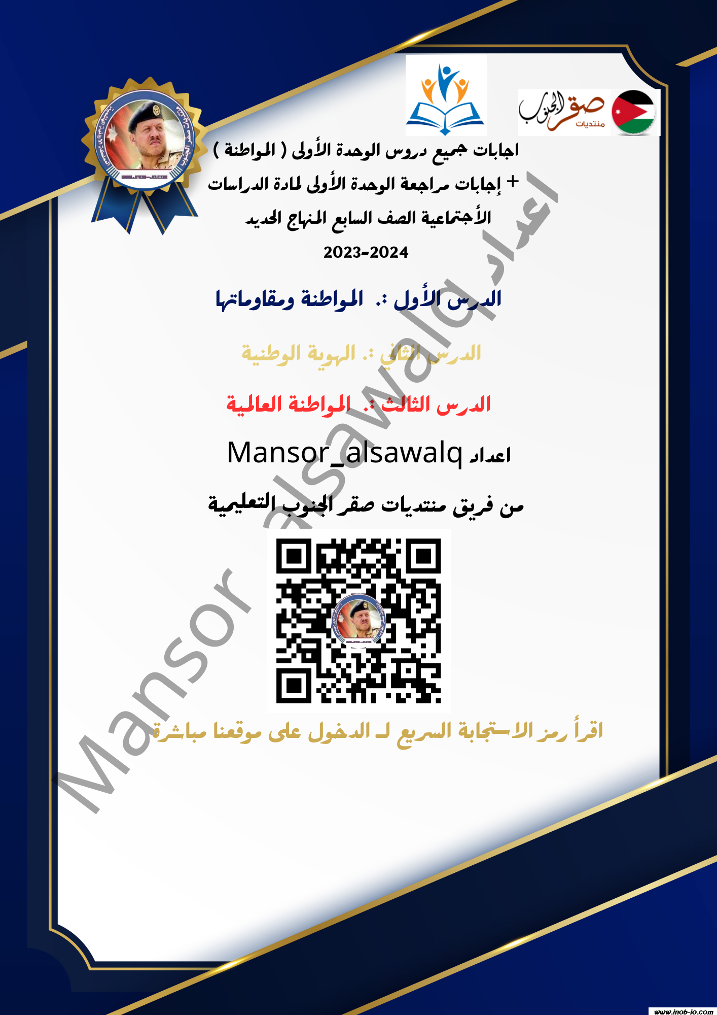 اجابات جميع دروس الوحدة الأولى ( المواطنة ) + إجابات مراجعة الوحدة الأولى لمادة الدراسات الأجتماعية الصف السابع المنهاج الجديد 2023-2024