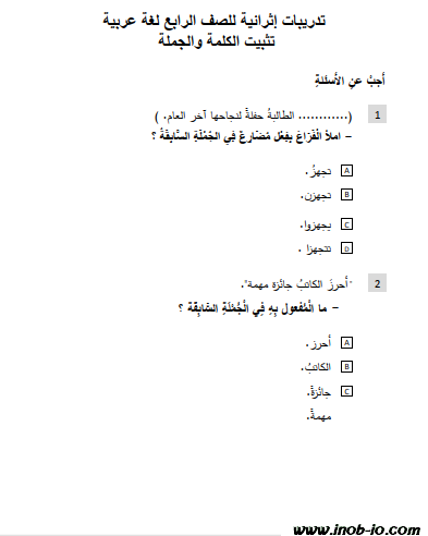 تدريبات اثرائية لتثبيت الكلمة والجملة لمادة اللغة العربية الصف الرابع الفصل الاول المنهاج القطري