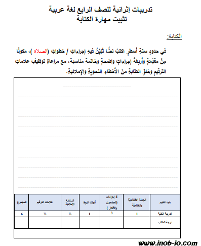تدريبات اثرائية لتثبيت مهارات الكتابة لمادة اللغة العربية الصف الرابع الفصل الاول المنهاج القطري
