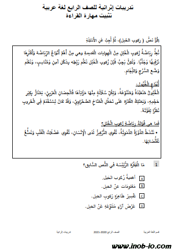 تدريبات إثرائية للصف الرابع لمادة الغة العربية ( تثبيت مهارة القراءة ) الفصل الاول المنهاج القطري ( 1 )