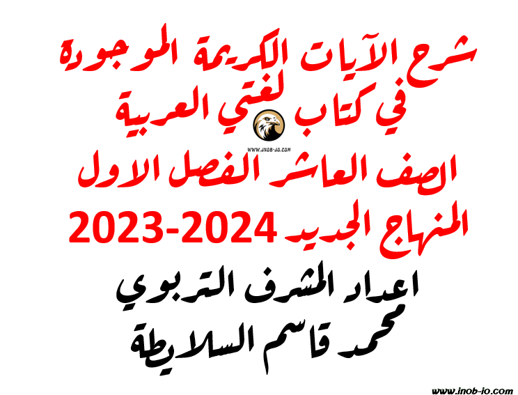 شرح الآيات الكريمة الموجودة في كتاب لغتي العربية الصف العاشر الفصل الاول