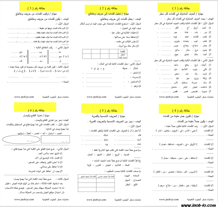 24 بطاقة في مهارات اللغة العربية البطاقات ملفات word قابلة للتعديل