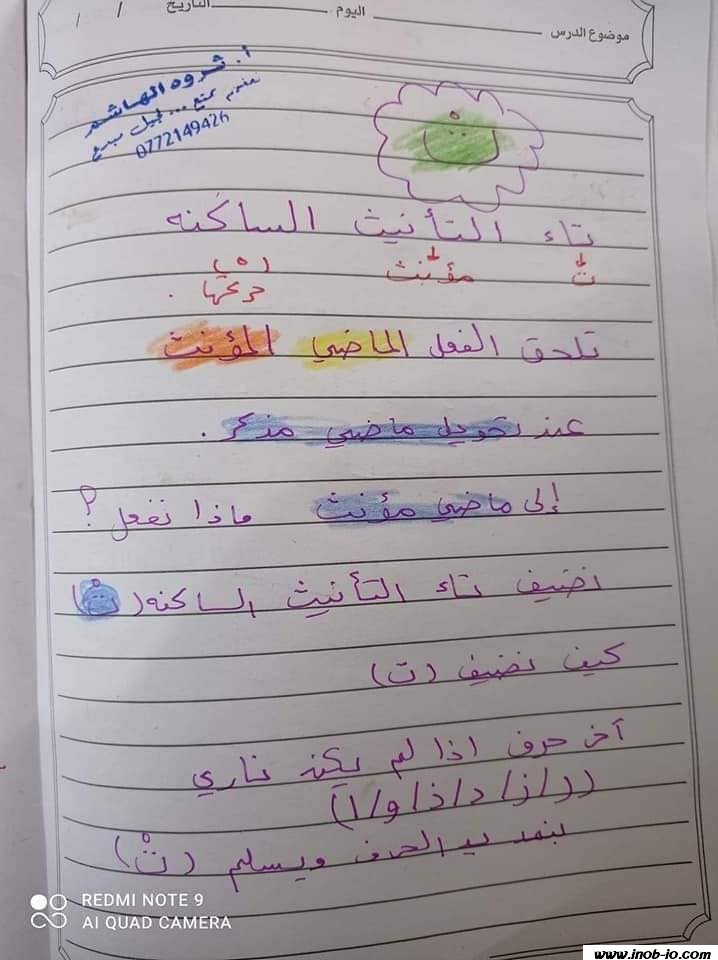 درس جزاء الإحسان شرح القاعدة الثانية تاء التأنيث الساكنة لمادة اللغة العربية الصف الثاني الفصل الاول