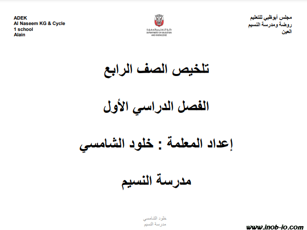 ملخص شامل لمادة التربية الإسلامية الصف الرابع الفصل الأول المنهاج الإماراتي