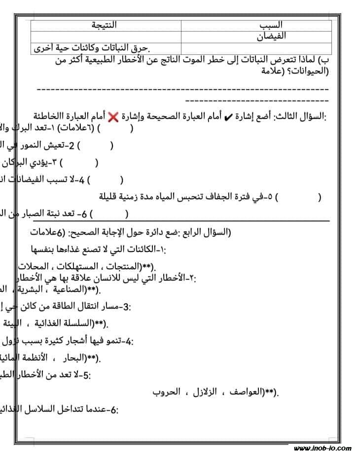 صور اختبار الشهر الثاني لماده العلوم collins الصف الثالث الفصل الأول نموذج 2