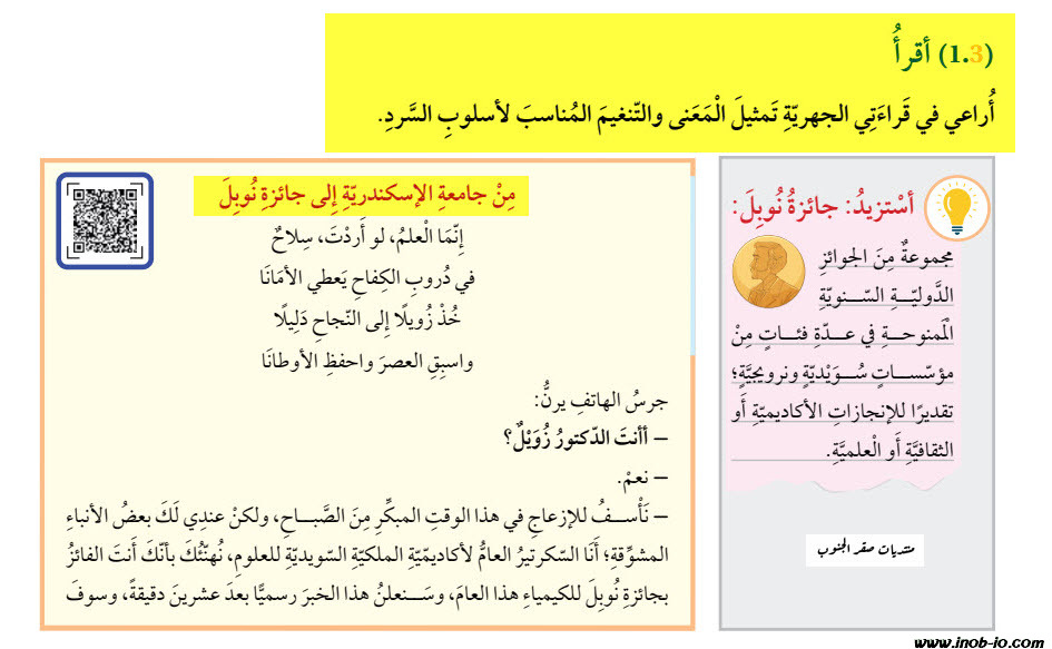 نص الاستماع من جامعة الإسكندرية الى جائزة نوبل لمادة العربية لغتي الصف السابع الفصل الاول 2023-2024