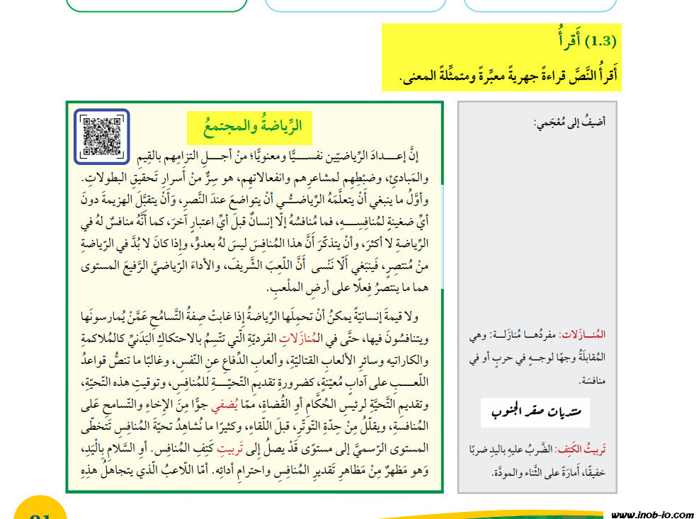نص الاستماع الرياضة والمجتمع لمادة العربية لغتي الصف السابع الفصل الاول