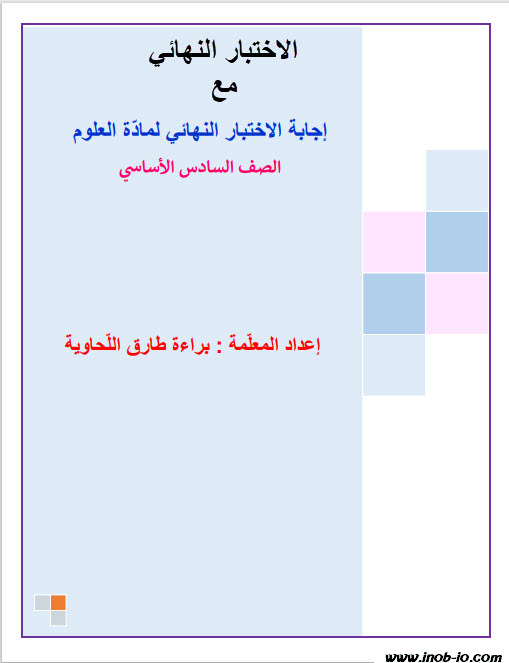 الاختبار النهائي لماده العلوم مع اجابات الصف السادس الفصل الاول قابل للتعدبل