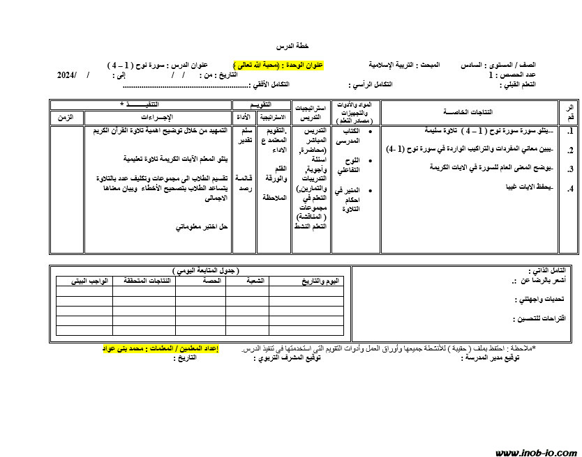 نموذج -1- Word قابل للتعديل التحضير الشامل لمادة لتربية الاسلامية للصف السادس الفصل الثاني المنهاج الجديد 2024-2025