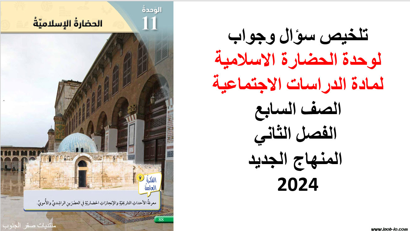 تلخيص سؤال وجواب لوحدة الحضارة الاسلامية لمادة الدراسات الاجتماعية الصف السابع الفصل الثاني 2024-2025