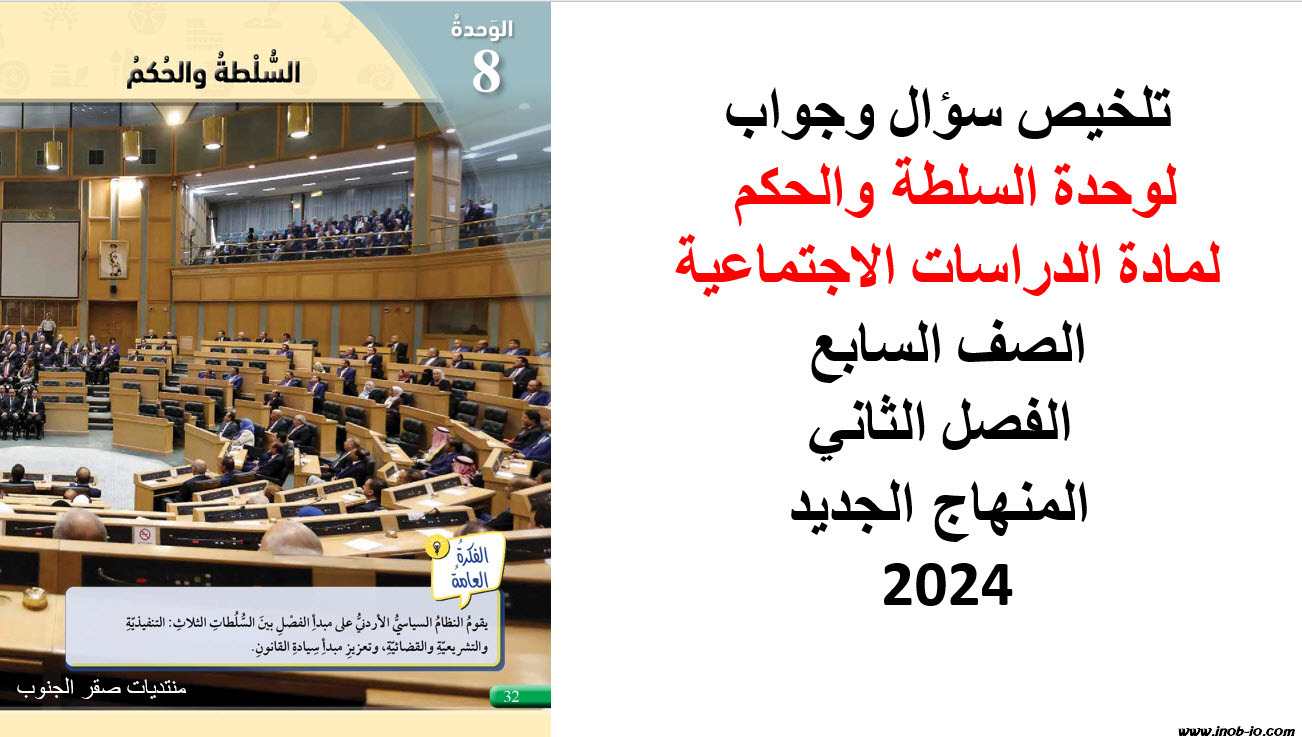 تلخيص سؤال وجواب لوحدة السلطة والحكم لمادة الدراسات الاجتماعية الصف السابع الفصل الثاني 2024-2025