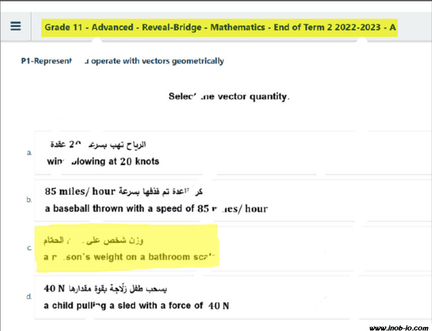 نموذج امتحان نهاية الفصل الثاني الرياضيات المتكاملة مع الحل الصف الحادي عشر متقدم الفصل الثاني
