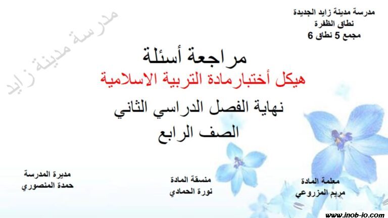 مراجعة أسئلة هيكل امتحان مادة التربية الإسلامية الصف الرابع الفصل الثاني