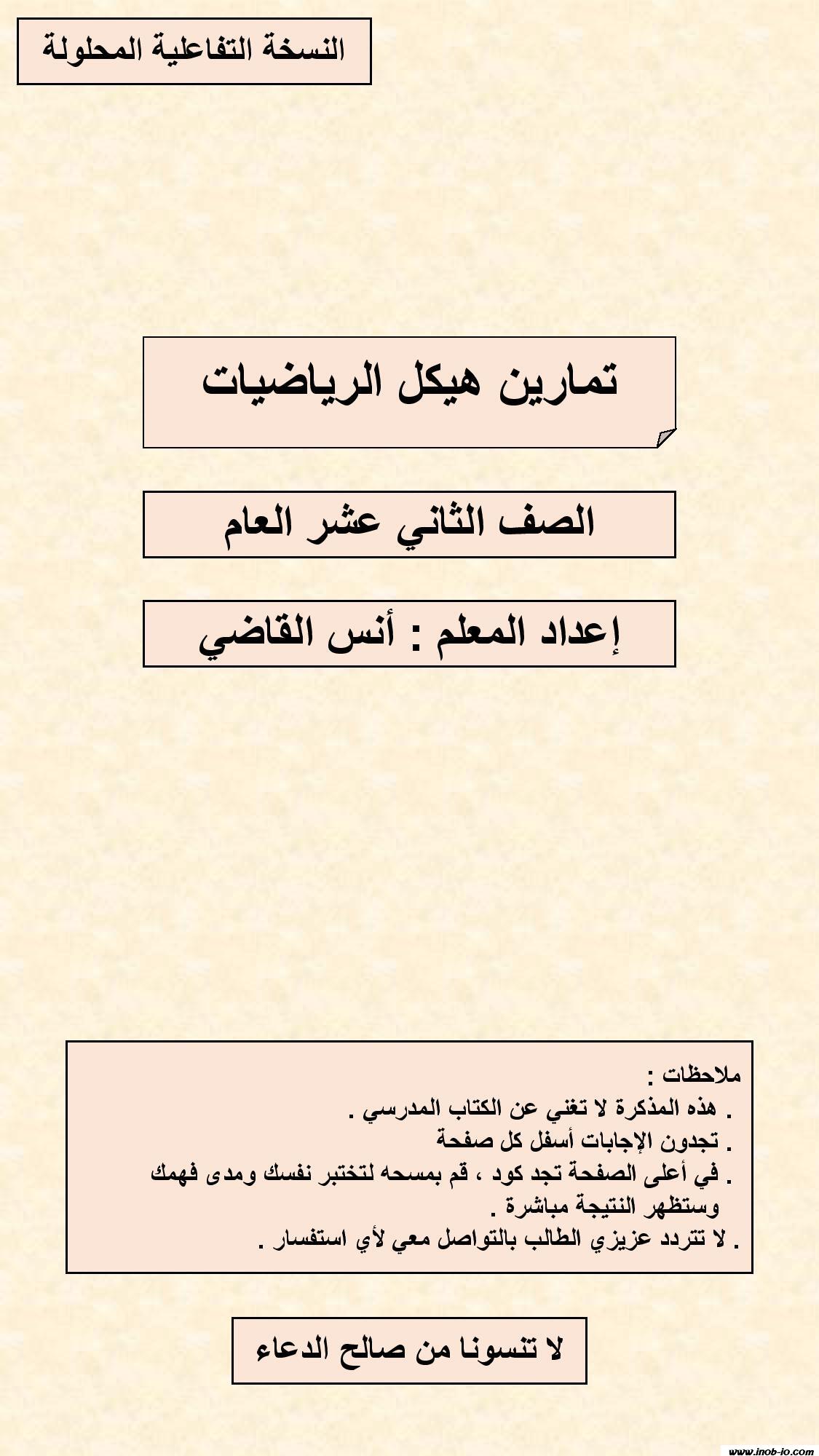 ملزمة تدريبات وفق الهيكل الوزاري مع الإجابات لمادة الرياضيات المتكاملة الصف الثاني عشر عام الفصل الثاني 2024