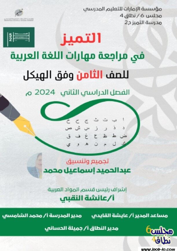 مراجعة المهارات مع الحلول لمادة اللغة العربية الصف الثامن الفصل الثاني -------------------------- حمل الملف بالضغط هنا --------------------------