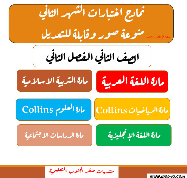 جمعت لكم موسوعة نماذج اختبارات الشهر الثاني لجميع مواد الصف الثاني الفصل الثاني محدث