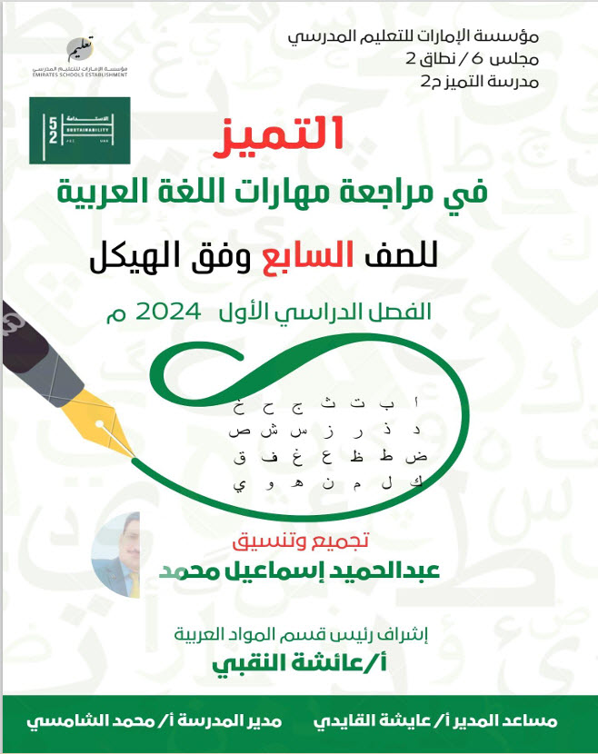 التميز في مراجعة مهارات مادة اللغة العربية وفق الهيكل لمادة اللغة العربية الصف السابع الفصل الاول