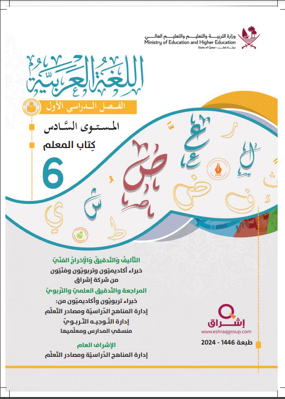 كتاب المعلم - دليل المعلم لمادة اللغة العربية المستوى السادس الفصل الاول المنهاج القطري نسخة 1446-2024