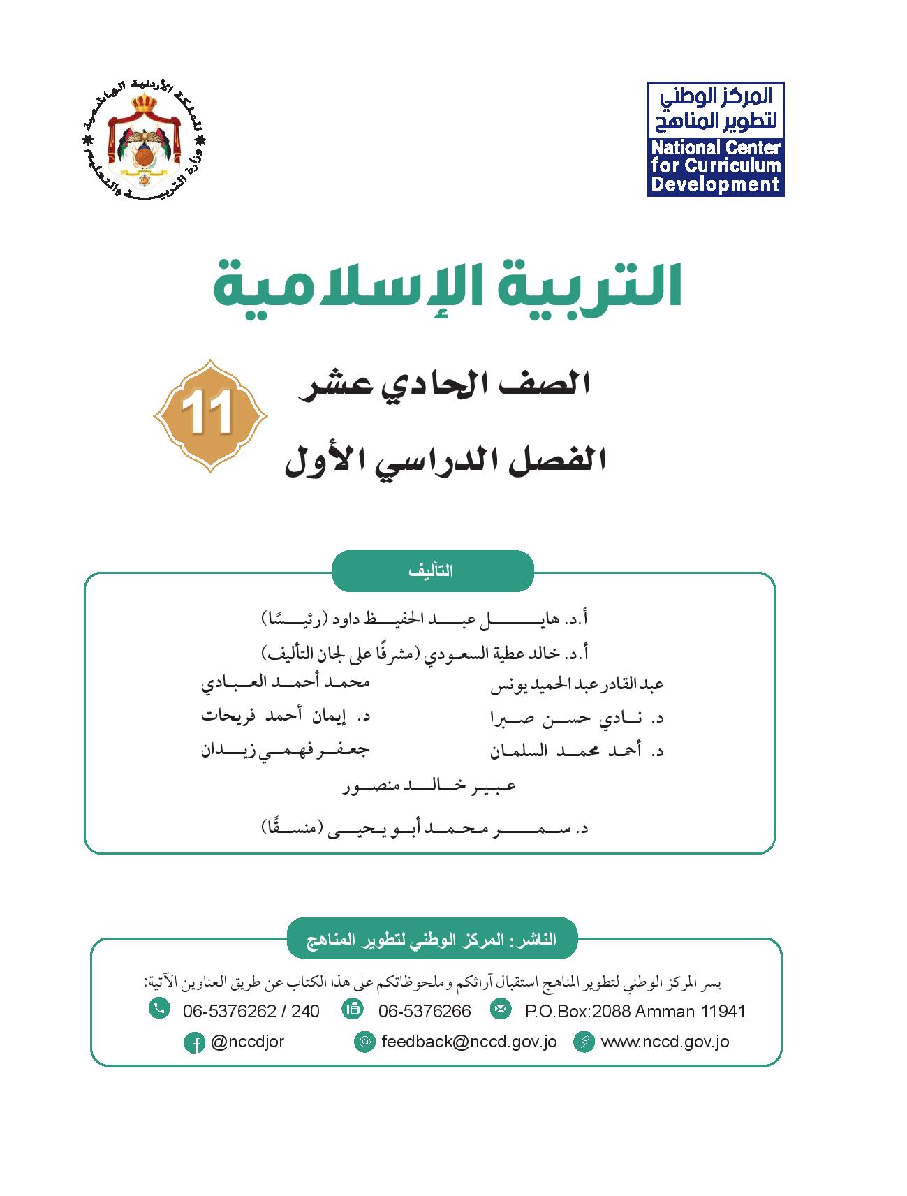 كتاب الطالب لمادة التربية الاسلامية الصف الحادي عشر الفصل الاول نسخة 1445-2024