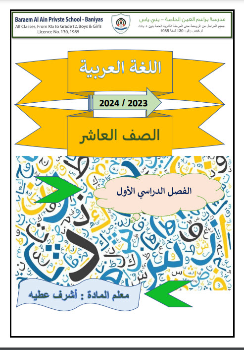 مرجعة شاملة اللغة العربية الصف العاشر الفصل الاول