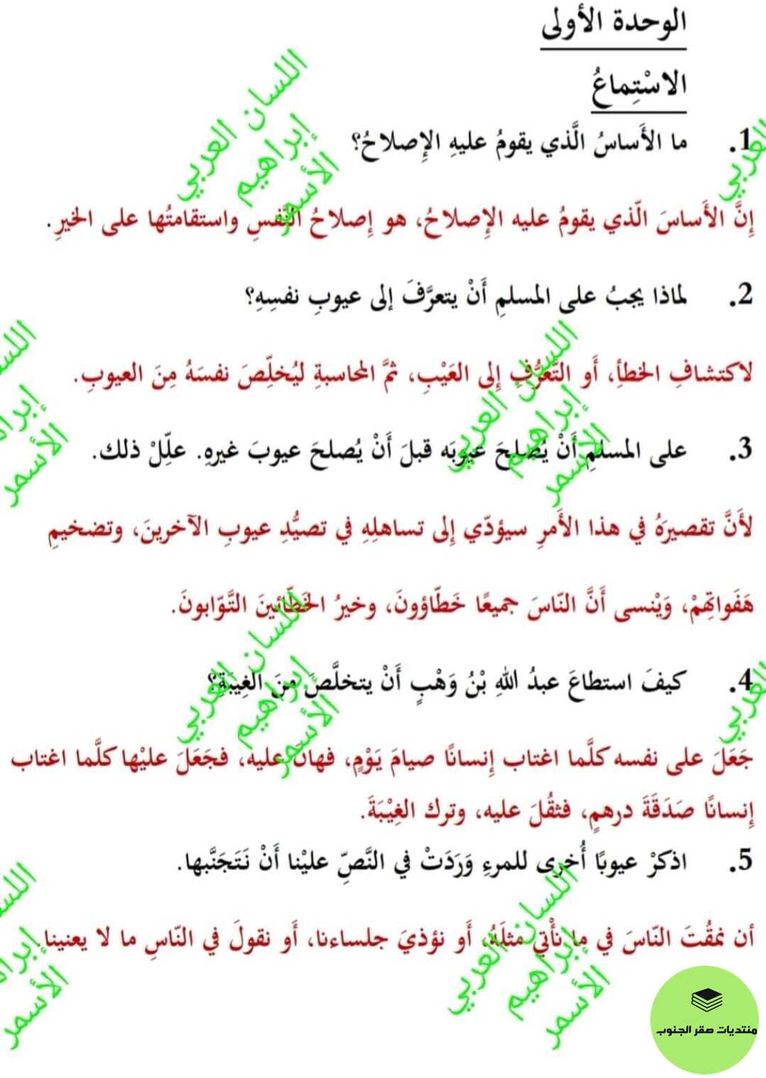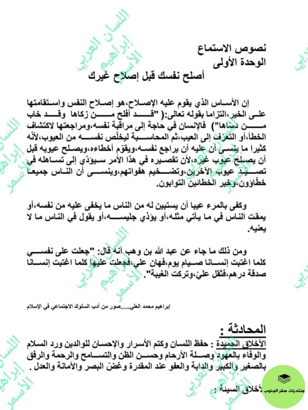 MP3 نص الاستماع أصلح نفسك قبل إصلاح غيرك مع الحل لمادة العربية لغتي الصف الثامن الفصل الاول