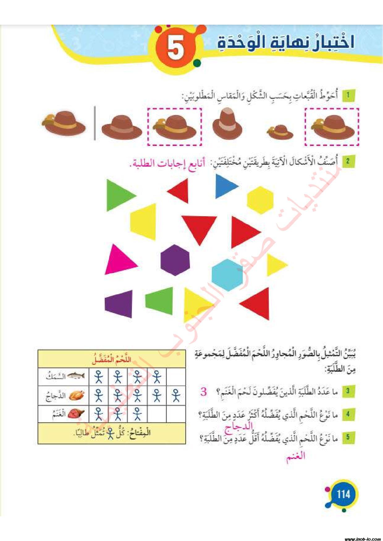 اختبار نهاية الوحدة -5- معالجة البيانات مع الإجابات النموذجية لمادة الرياضيات Collins الصف الاول الفصل الاول