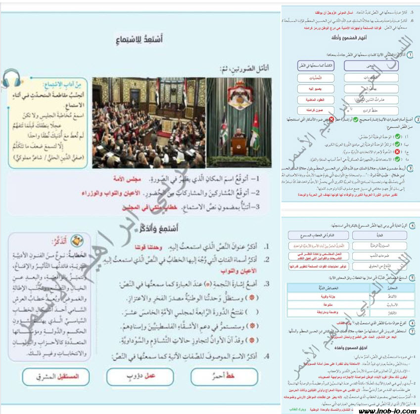 حلول درس الاستماع إضاءات على خطاب العرش لمادة العربية لغتي الصف الثامن الفصل الاول