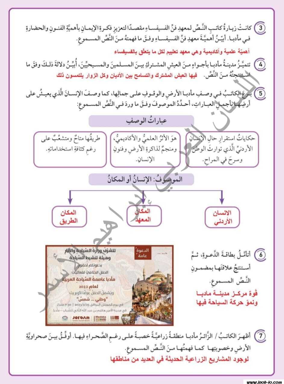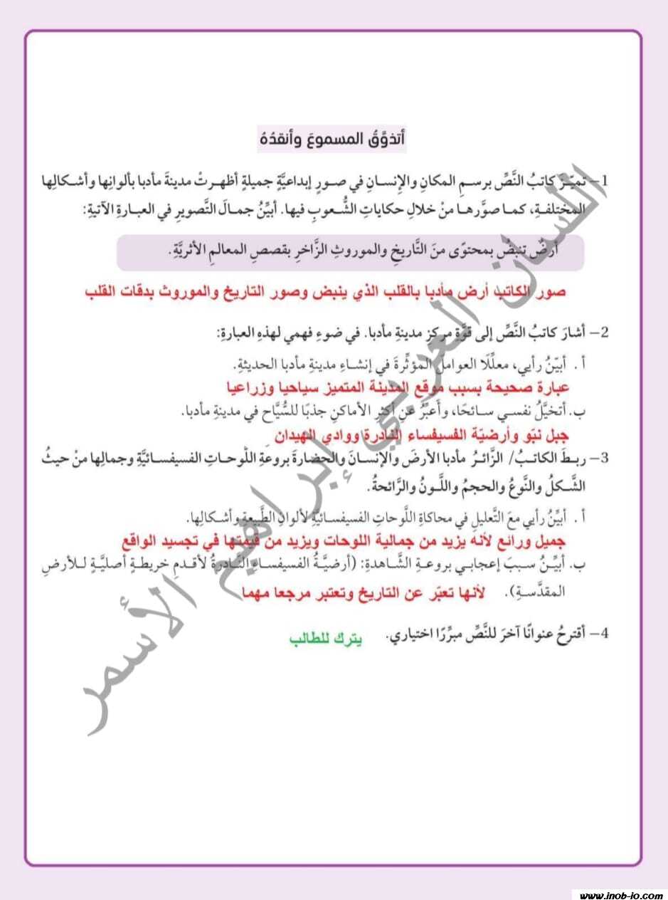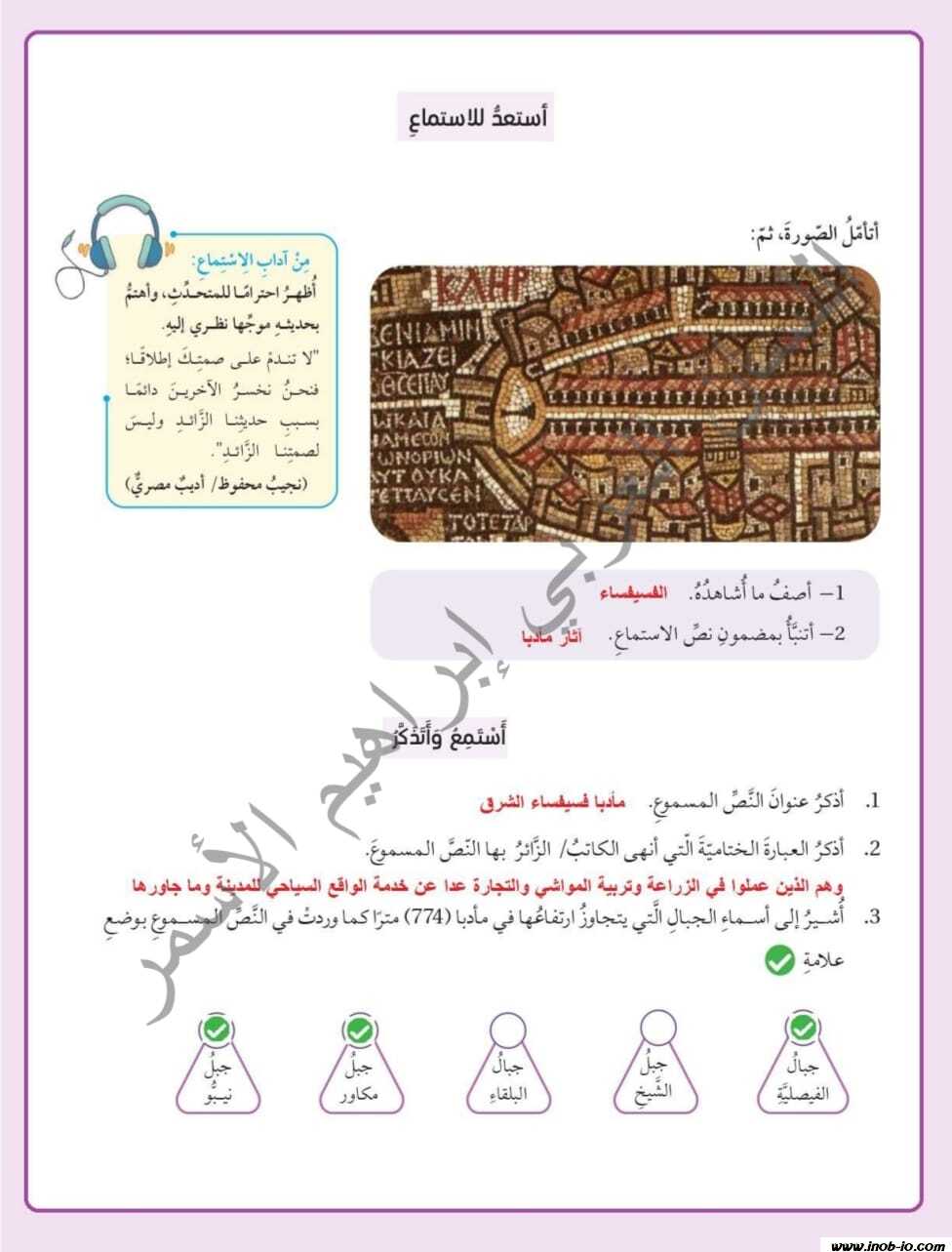 حل درس الاستماع مادبا فسيفساء الشرق لمادة العربية لغتي الصف الثامن الفصل الاول