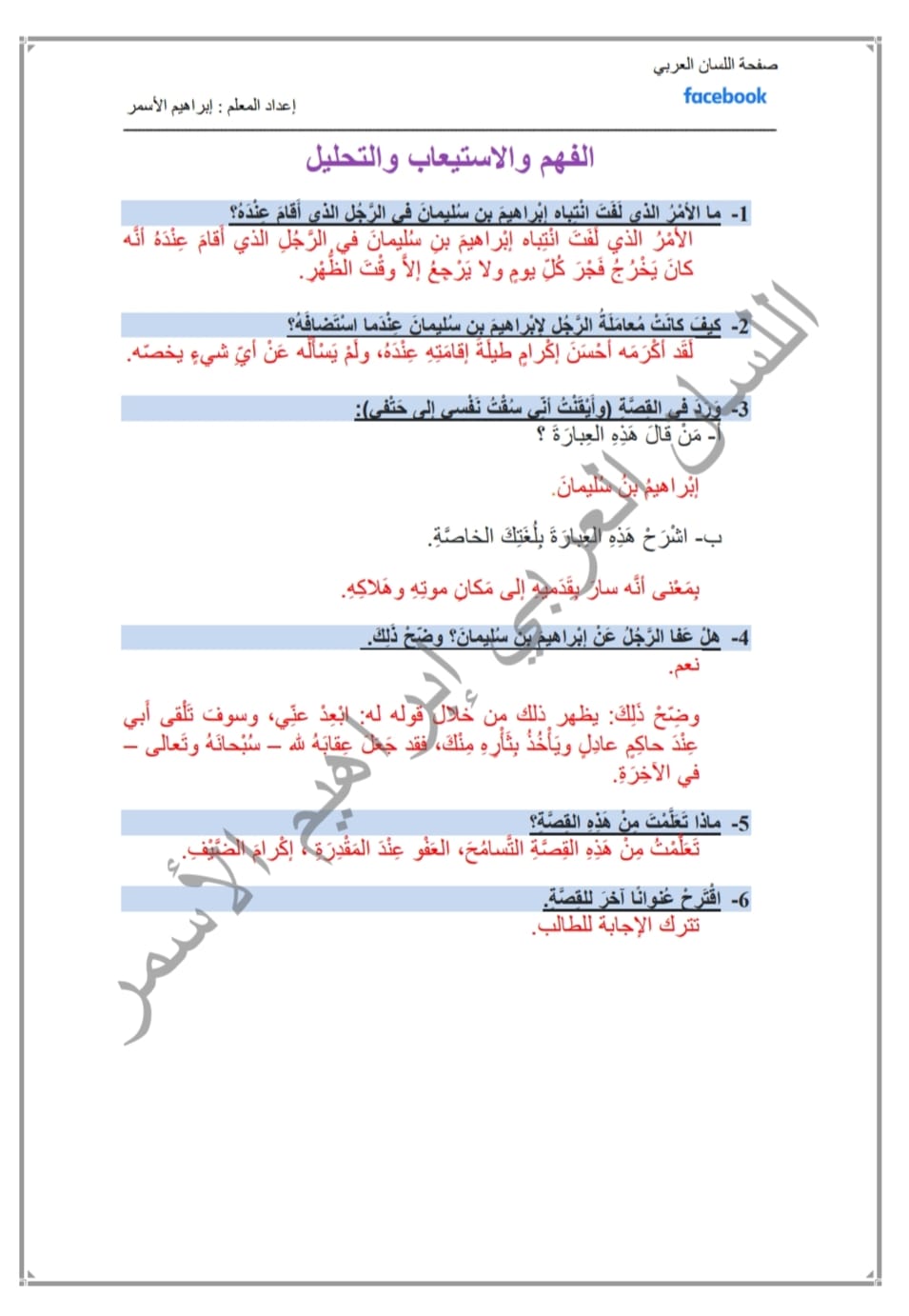 من شيم الكرام حل أسئلة المعجم والدلالة والفهم والاستيعاب لمادة العربية لغتي الصف السادس الفصل الاول