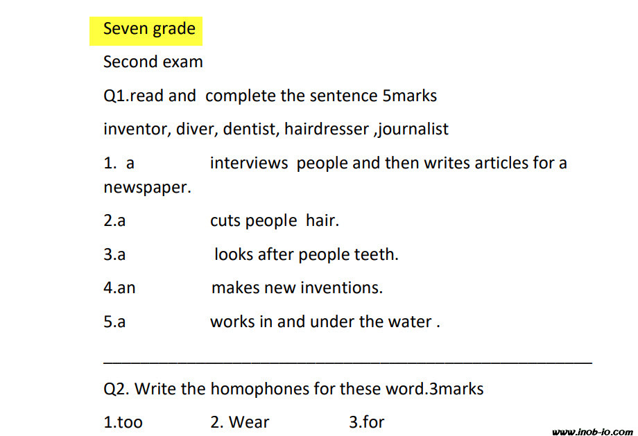 PDF اختبار الشهر الثاني لمادة اللغة الانجليزية jordan-team together الصف السابع الفصل الأول نموذج1