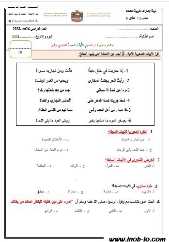 Word نموذج word قابل للتعديل الاختبار القصير الأول لمادة اللغة العربية الصف الحادي عشر الفصل الاول