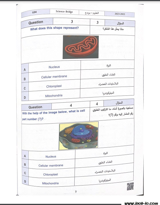 نموذج -6-الامتحان التعويضي مع الإجابات لمادة العلوم المتكاملة الصف الرابع الفصل الأول