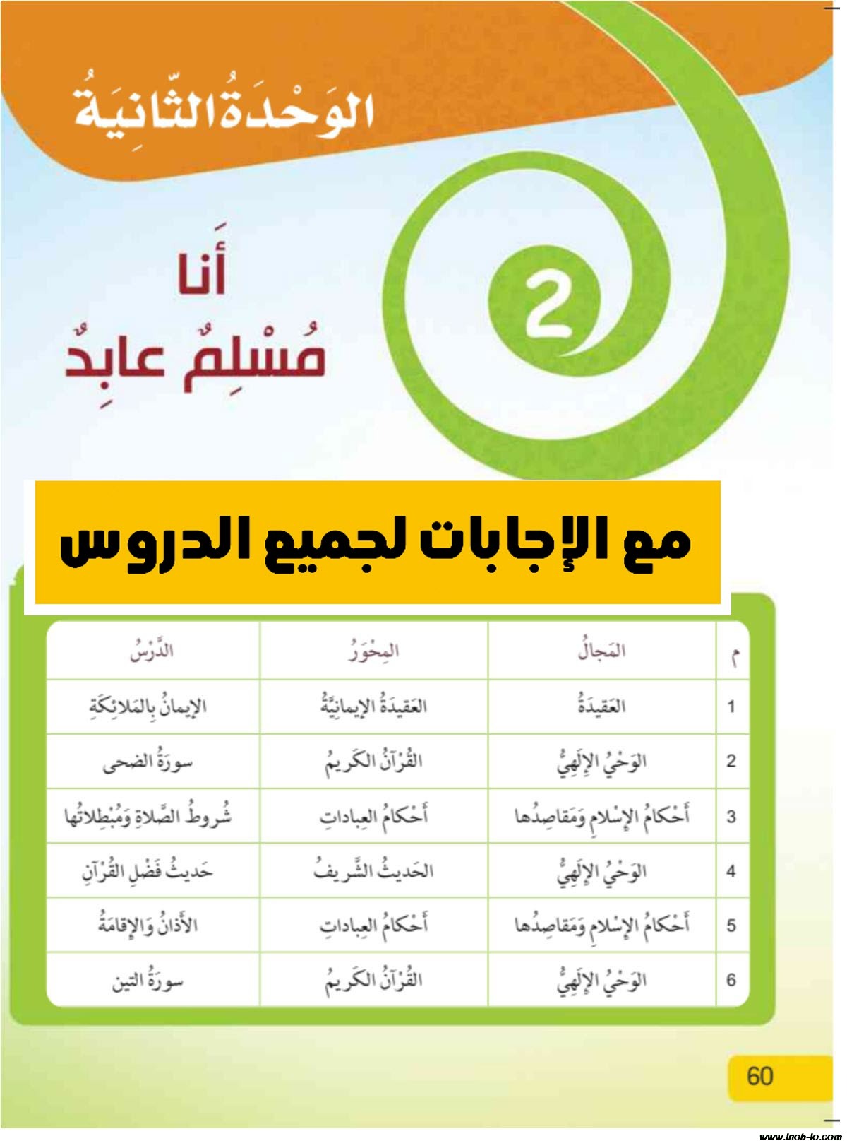 حلول جميع دروس الوحدة الثانية أنا مسلم عابد لمادة التربية الاسلامية الصف الثالث الفصل الاول