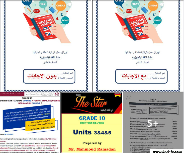 للاختبارات النهائية تلاخيص تدريبات اختبارات مع الإجابات أوراق عمل منوعة لمادة اللغة الانجليزية المستوى العاشر الفصل الاول