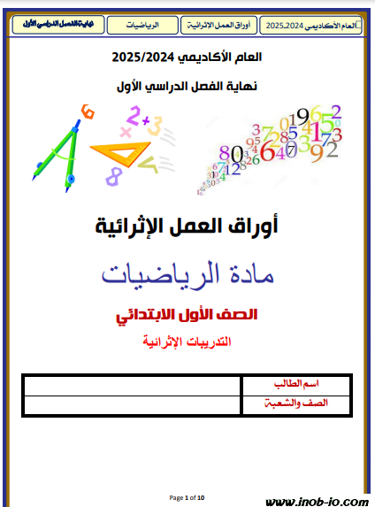 تدريبات اثرائية نهاية الفصل الأول مادة الرياضيات الصف الأول المنهاج القطري لتحميل الملف PDF اضغط هنا وتابع