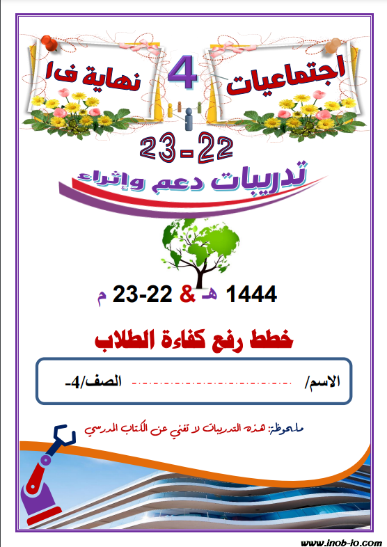 PDF تدريبات دعم واثراء لاختبار نهاية الفصل ( غير مجابة ) لمادة الدراسات الاجتماعية المستوى الرابع الفصل الأول