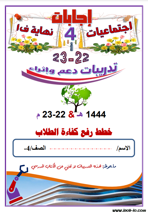 تدريبات دعم واثراء لاختبار نهاية الفصل ( مجابة ) لمادة الدراسات الاجتماعية المستوى الرابع الفصل الأول لتحميل الملف PDF اضغط هنا وتابع