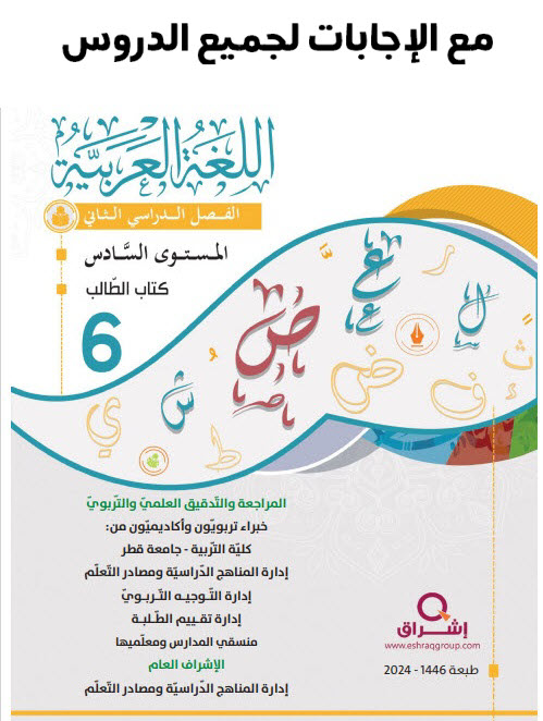حلول واجابات مادة اللغة العربية المستوى السادس الفصل الثاني المنهاج القطري نسخة 1446-2024