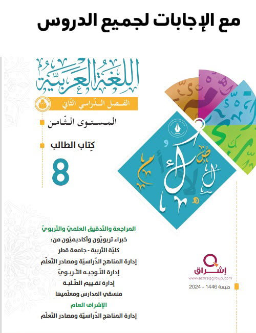 حلول واجابات مادة اللغة العربية المستوى الثامن الفصل الثاني المنهاج القطري نسخة 1446-2024