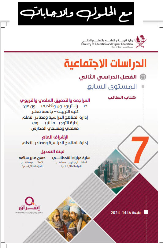 حلول واجابات مادة الدراسات الاجتماعية المستوى السابع الفصل الثاني المنهاج القطري نسخة 1446-2024