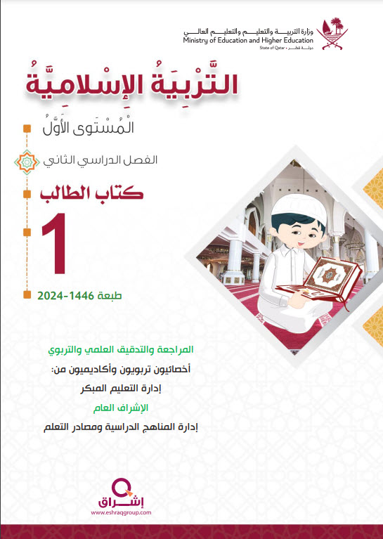 كتاب الطالب لمادة التربية الاسلامية المستوى الاول الفصل الثاني المنهاج القطري نسخة 1446-2024