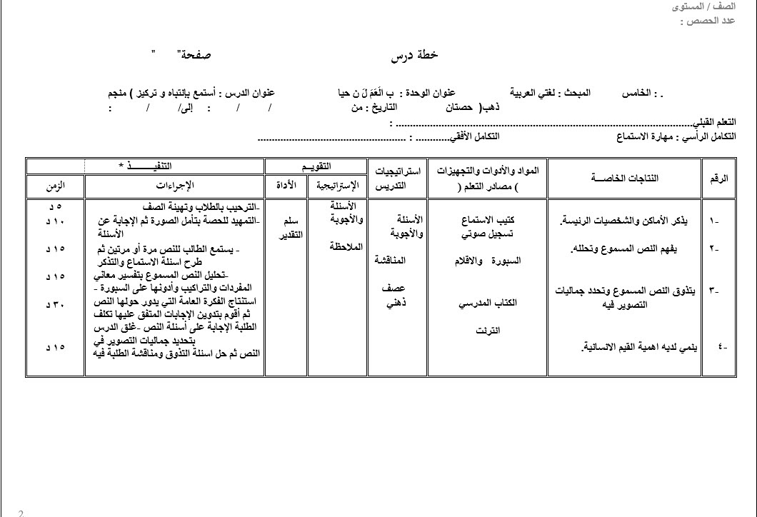 نموذج Word التحضير الشامل لمادة العربية لغتي الصف الخامس الفصل الثاني المنهاج الجديد 2025
