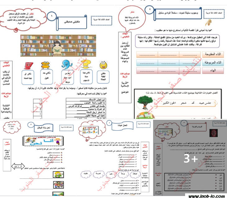 مجموعة منوعة من أوراق عمل التمكينية في اللغة العربية للصف الثالث الفصل الأول
