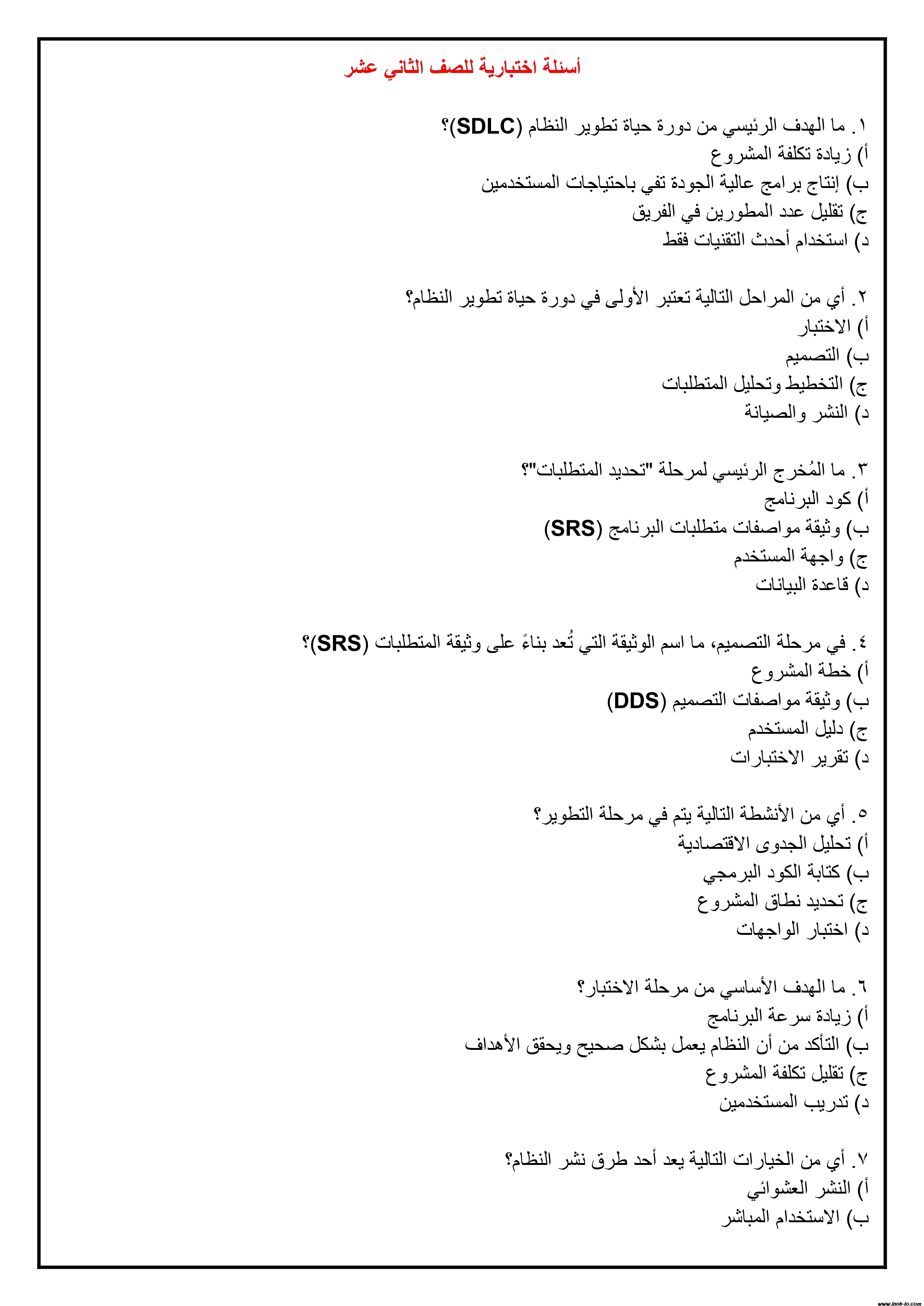 اختبار الشهر الأول لمادة المهارات الرقمية الصف الثاني عشر الفصل الاول نموذج 1