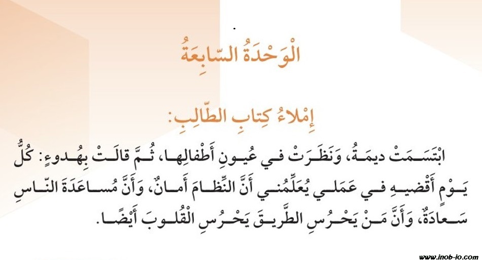 نص الاملاء كتاب الطالب الوحدة (7) احرس بلدي لمادة العربية لغتي الصف الثالث الفصل الثاني