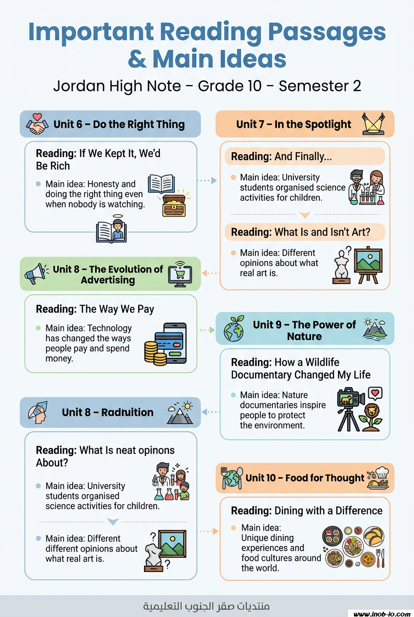 شرح jordan high note – grade 10 – semester 2 مع أسئلة وفهم + الإجابات النموذجية بشكل مناسب للامتحانات