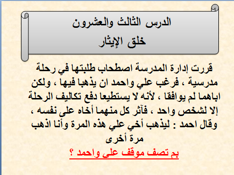 عرض محوسب :. درس خلق الإيثار لمادة التربية الاسلامية الصف السادس الفصل الثاني