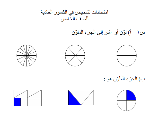 نموذج Word مكون من 6 صفحات امتحان تشخيص في الكسور العادية لمادة الرياضيات الصف الخامس الفصل الاول