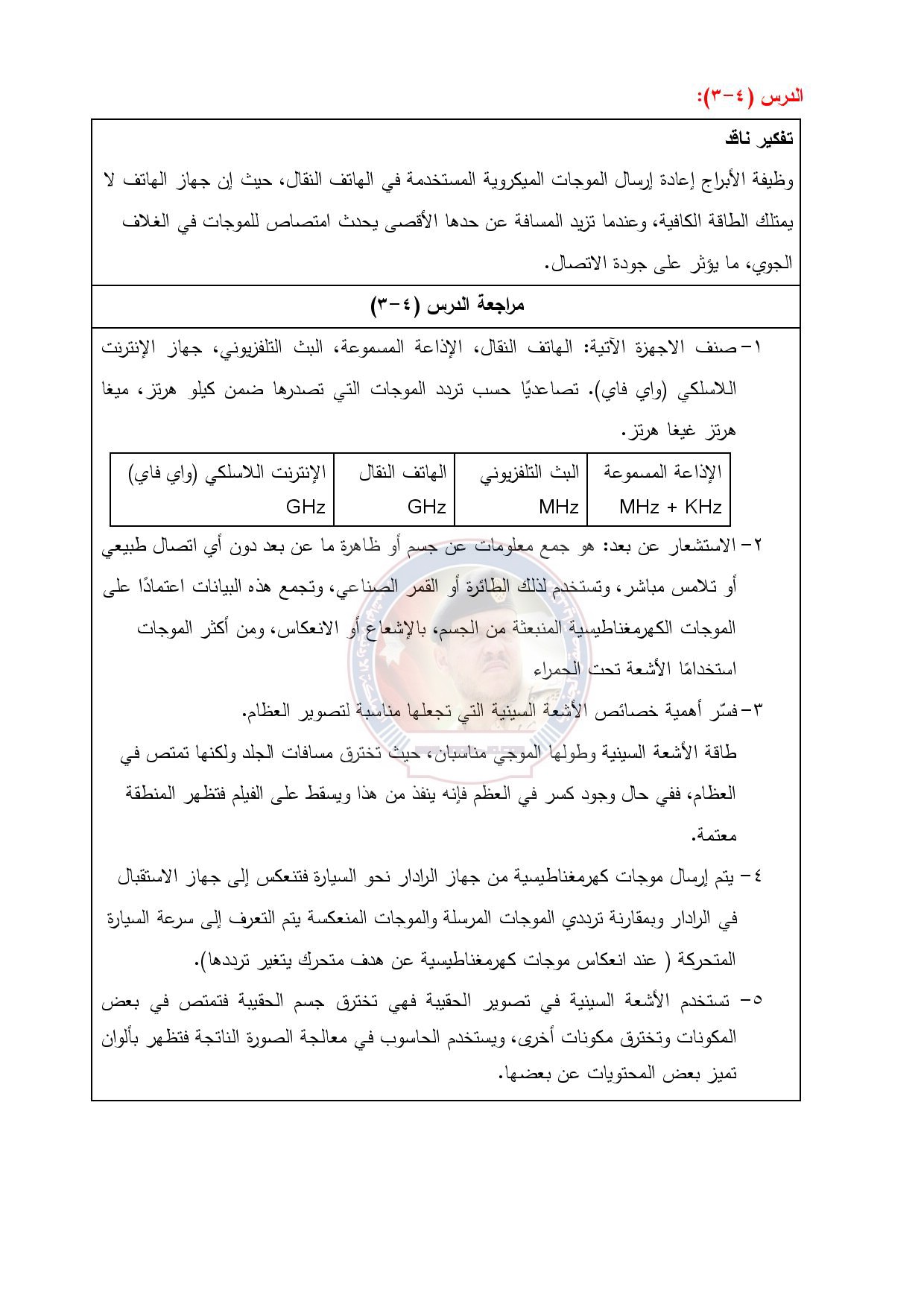 • اجابات جميع دروس الفصل الرابع الطيف الكهرمغاطيسي الوحدة الثالثة التذبذبات والموجات لمادة الفزياء.zip
